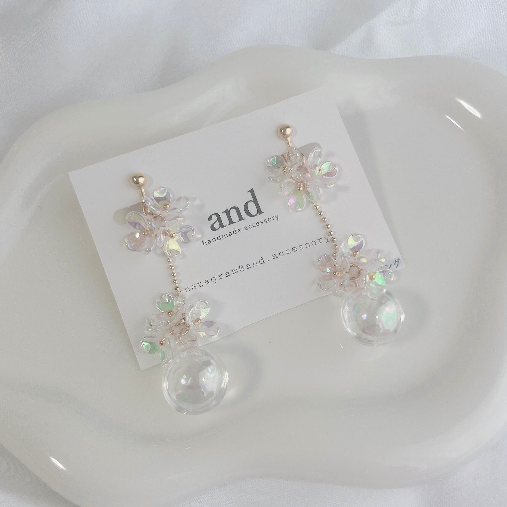 バブルは光の当たり方で色が変わるオーロラカラーです。